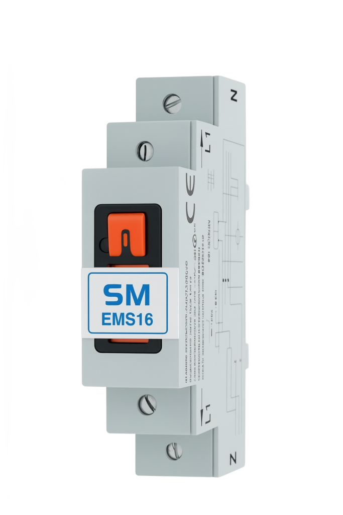 EMS 16 je samodejno stikalo razvito v podjetju SM Strojkoplast d.o.o., za izklop električnih tokokrogov, zasnovano predvsem za uporabo v spalnih in drugih bivalnih prostorih. Njegova glavna funkcija je, da samodejno prekine napajanje, ko v tokokrogu ni aktivnega porabnika (npr. luči ali naprave).