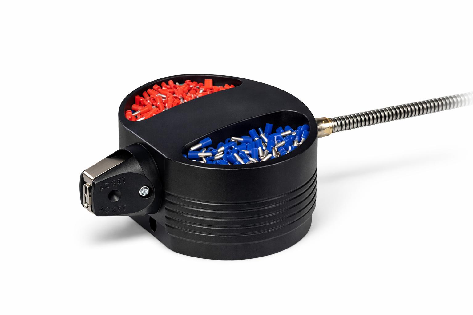 AC 40 T je zmogljiva pnevmatska namizna naprava, zasnovana za učinkovito in ponovljivo stiskanje tulk (ferul) na električnih vodnikih. Podpira preseke od 0,14 do 4 mm², kar omogoča uporabo pri širšem spektru aplikacij v elektroindustriji, proizvodnji in sestavi elektro omar.