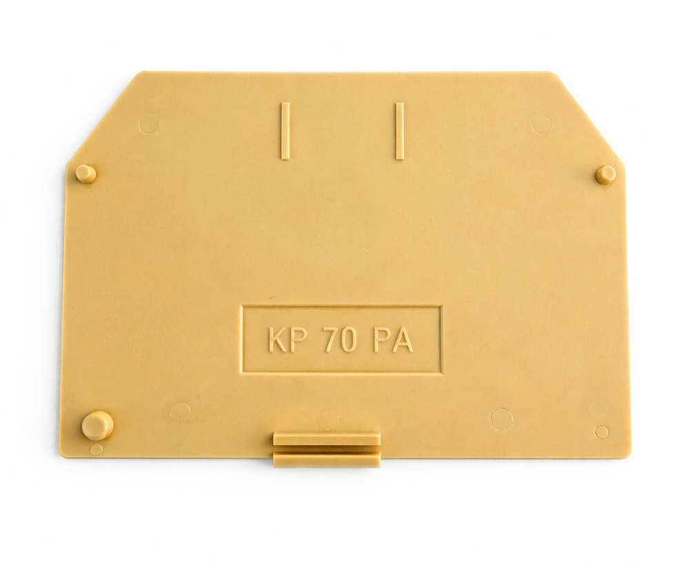 Končne ploščice nameščamo na pripadajoče vrstne sponke z namenom zaščite pred električnim udarom, kot posledico neporednega dotika delov vrstne sponke pod napetostjo.